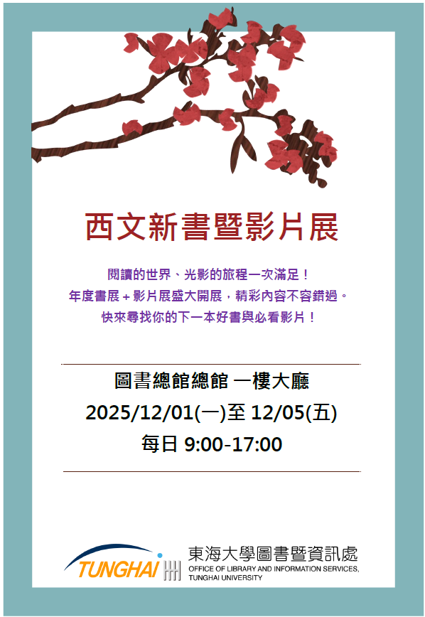 2025西文新書暨影片展 穿越紙頁與銀幕的雙重旅程! 沉浸於文字的思想深度,陶醉於光影的敘事魅力。從年度精選文學到感動人心的佳片,為您一次彙整。啟發靈感的下一個故事,就在這裡等待與您相遇。快來探索專屬於您的「必讀清單」與「必看清單」! 2025 年 12 月 3 日 In 推廣/活動 1F 大廳展示區 2025 ← Previous post Next post →